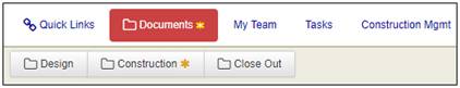 First, the Project Admin can assign all of the groups listed under the Documents tab in the navigation pane. See Design, Construction and Close Out in the diagram above.
